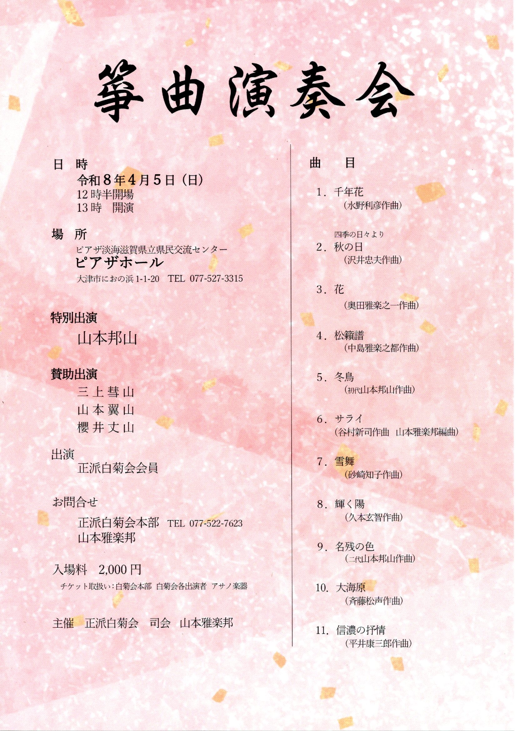箏曲演奏会 | 2026年4月5日(日) 13:00 開演 | ピアザ淡海滋賀県立県民交流センター | |