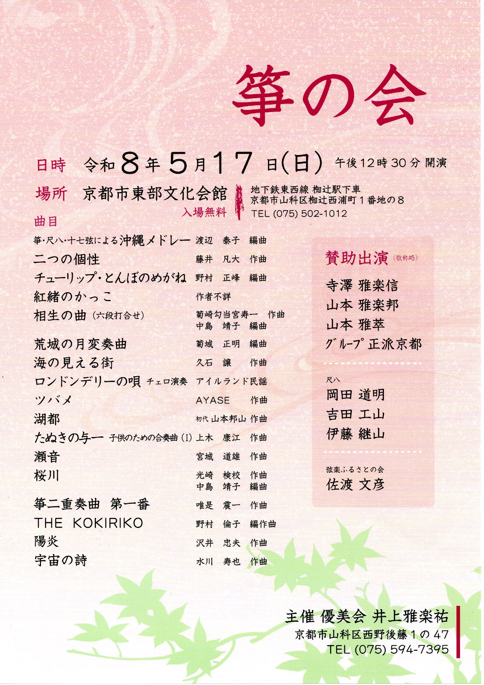 筝の会 | 2026年5月17日(日) 12:30 開演 | 京都市東部文化会館 |
